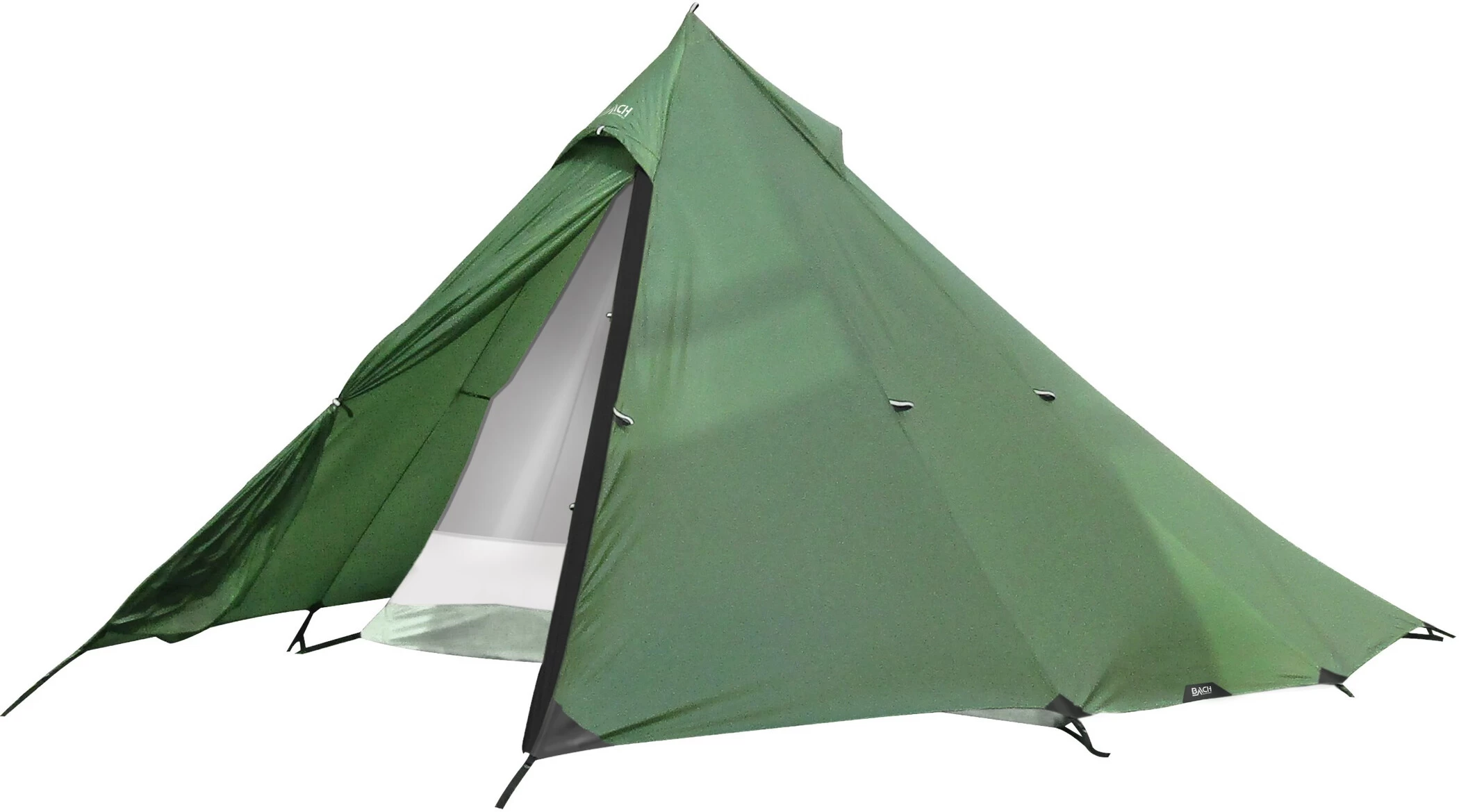 The new Wicki Up 5 has been inspired by classic Dutch tent design. The Wicki Up 5 is different from Bach’s smaller 3 and 4 tipi models, because of its asymmetric design. The pole is not positioned in the center position. At one side of the pole you can find a 240cm long sleeping area. A large vestibule space can be found at the other end with plenty of room to socialize or cook.The sleek design naturally repels strong winds and extra guide tabs are provided for even greater security.