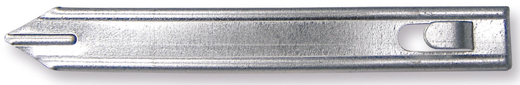Extra strong heavy duty plated tent peg for hard ground penetration.