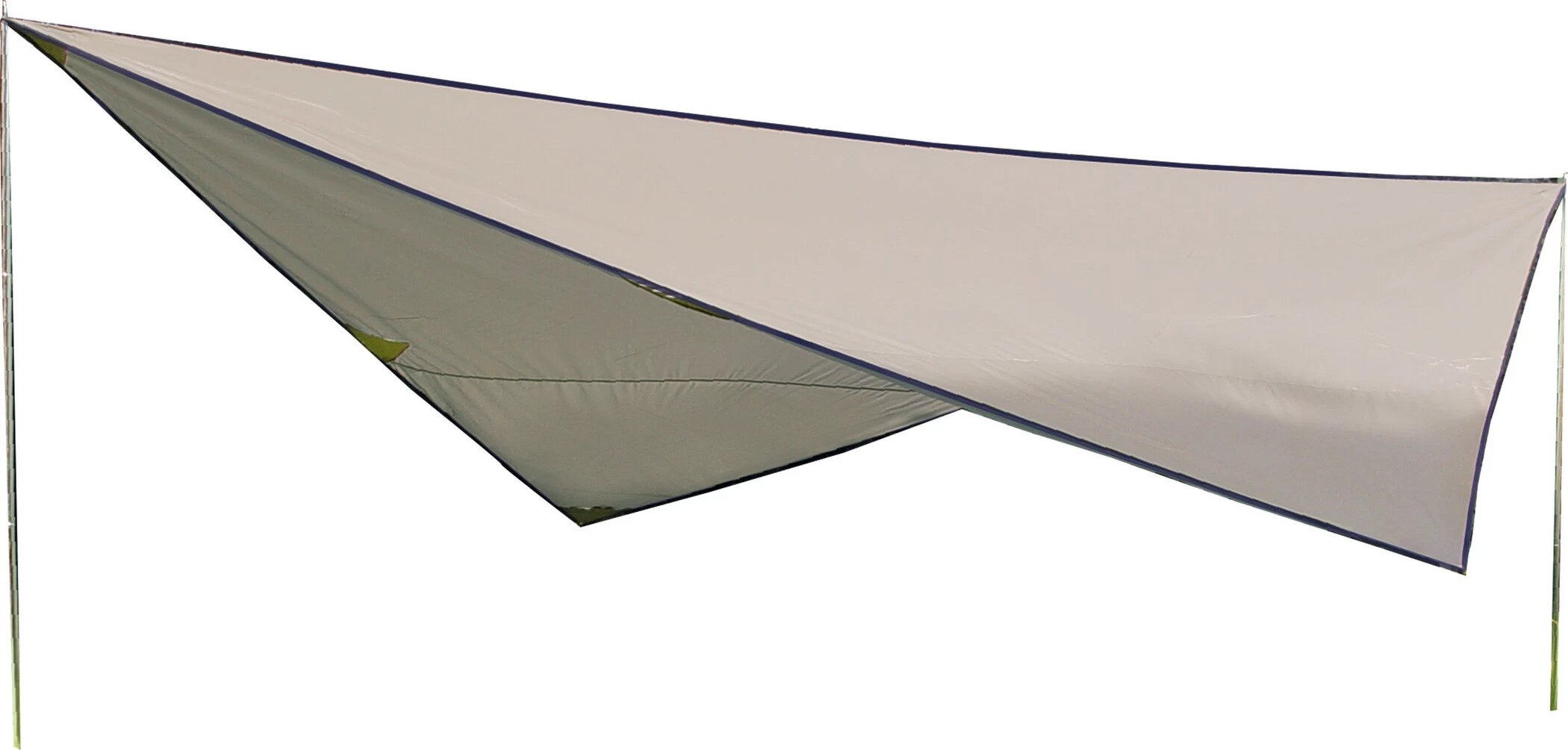 Tarp with reinforced corners and PU coating. Ideal for sun protection and rain. Perfect to use as shelter to protect you tent or simply make a super lightweight porch and enlarge your living space.