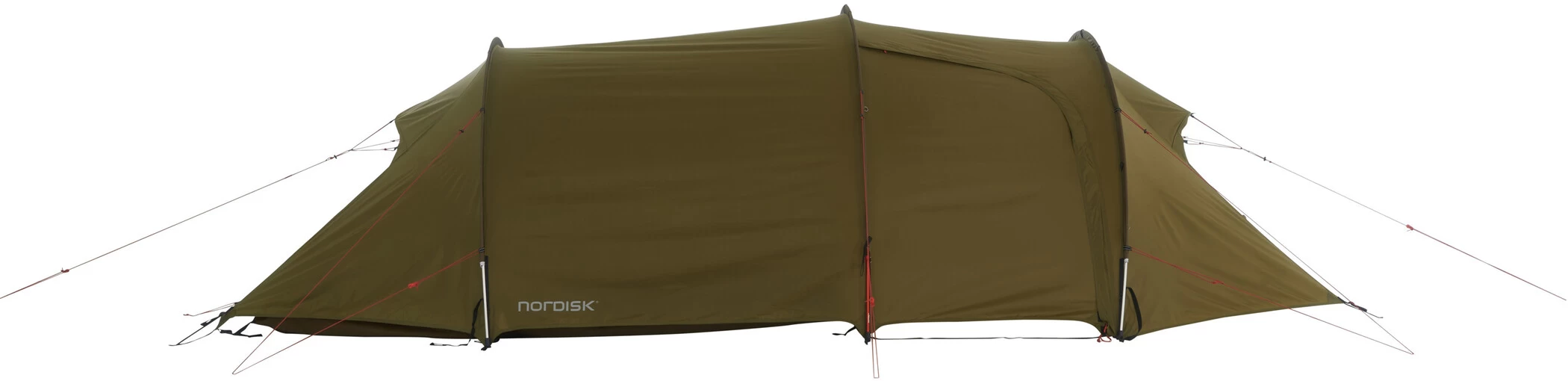 The new and updated Oppland 3 PU is very easy to pitch (and to pack down again) due to the aerodynamic tunnel construction, which also provides excellent strength. Inside, the Oppland 3 is one of the widest 3 person tents on the market with plenty of room for three large persons – and a spacious porch allowing extra space for storage, cooking or simply living. It has two entrances and a large vent in each end of the tent, creating multiple options for ventilation thus ensuring a great indoor climate. Oppland is your tent of choice for any trip, where the weather conditions bids you to spend most of your camp-time inside.