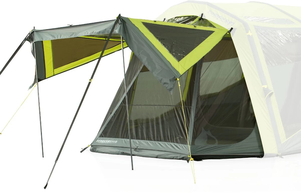 Close off the awning area of your Evo TL V2 tent with an awning wall set. Thanks to the 2-panel design, you can adapt to the current weather and outdoor conditions with either the waterproof polyester wall or the mosquito proof mesh wall. You can also use both walls together by setting up the waterproof wall as a sun awning (poles included). Tinted panoramic PVC windows in the polyester wall allow light to enter and protect from wind and weather at the same time.